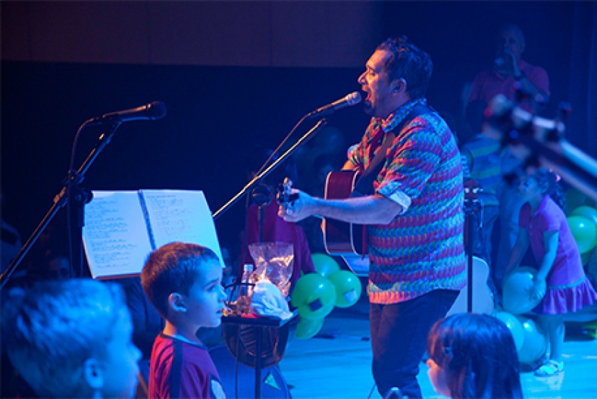 “Durante a música Blackbird, convidamos os pequenos para subir ao palco e tocar os instrumentos junto com a gente, dessa forma elas sentem também a música de dentro do palco, que é uma ótica totalmente diferente da de quem está na plateia”, conta Fabio.