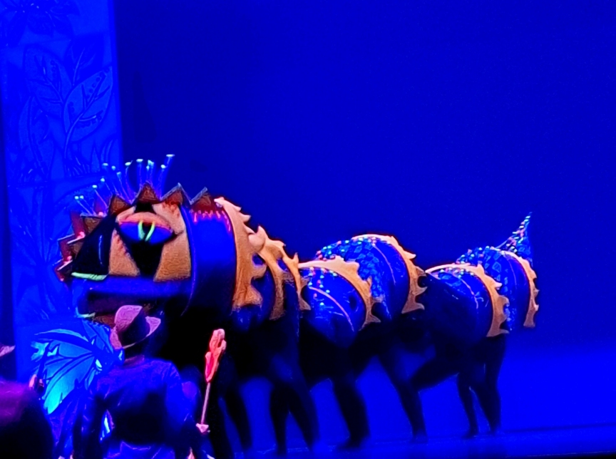 No palco vemos cinco histórias muito conhecidas: Mula Sem Cabeça, Jaci e a lenda da Vitória-Régia, Caipora, Boto Cor-de-Rosa e Boitatá.