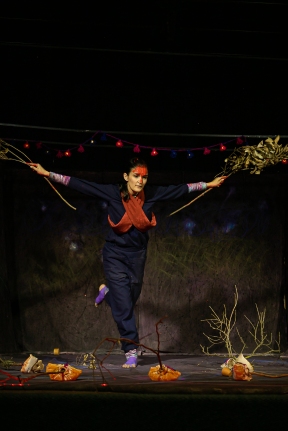 Em cartaz dias 25 e 26 de outubro, a peça é inspirada nos contos “A Plumagem dos Pássaros” , do povo Calchaquí, da Argentina, e traz narrativas do nascimento da Noite, presente no conto do Mutum , do povo Yanomami (Brasil), personagem principal do espetáculo. Outros contos que a serpente El Amaru , da mitologia dos Andes; a lenda do pica-pau dos Tehuelches , da Terra do Fogo; e a história da flor sagrada Qantu , do povo Quechua.