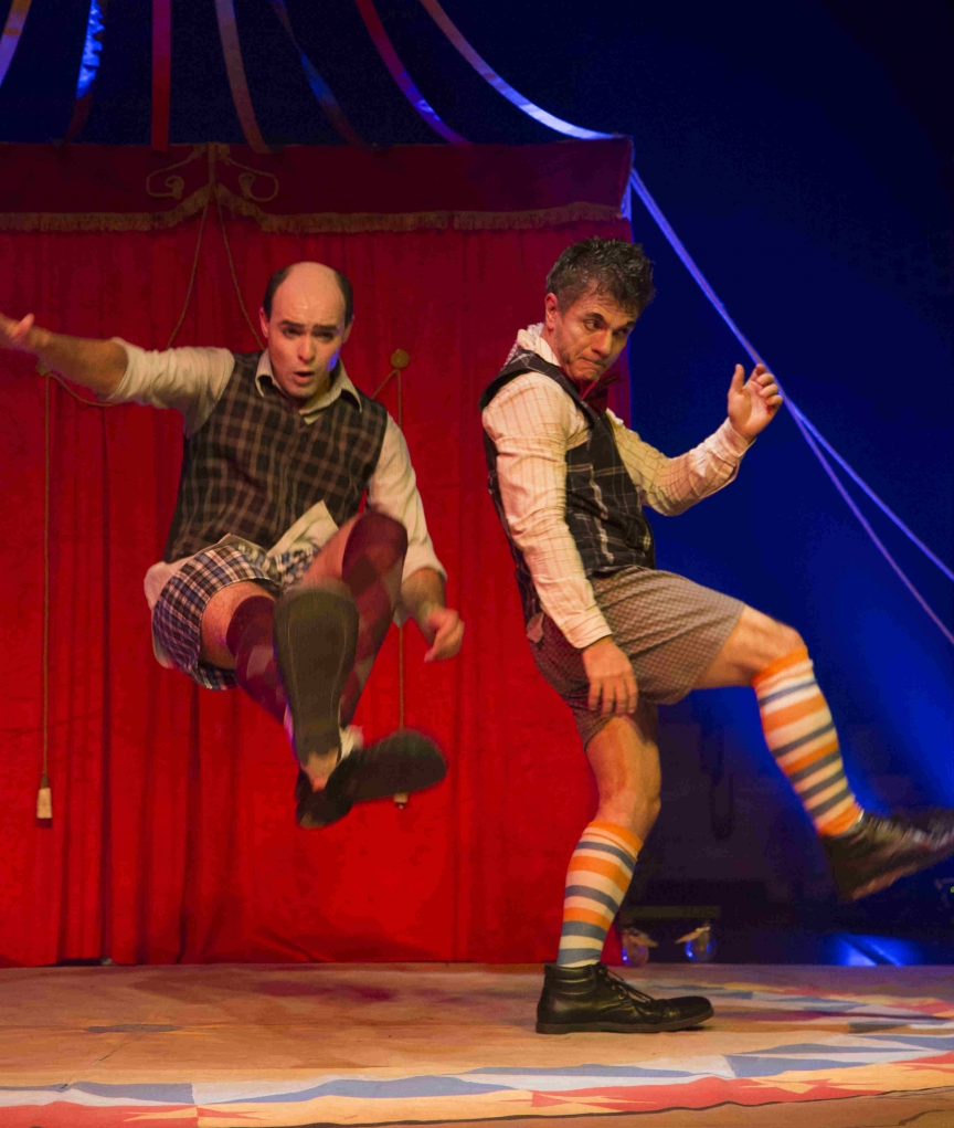 No palco, David Taiyu e Sandro Fontes, que se conheceram na ONG Doutores da Alegria, interpretam dois homens que invadem um circo na calada da noite e desrespeitam a regra que é tradição.