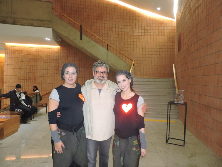 CAROL E MEL – As condições dos teatros são as mais diversas. Tem teatro reformado e que abriu quando chegamos, administrado por pessoas apaixonadas pelo teatro. Espirito Santo do Pinhal é um exemplo. A administradora é apaixonada pelo teatro, que é antigo e foi restaurado. Já Pindamonhangaba é muito carente e o teatro de lá é um galpão, em condições muito difíceis. Mas em todos os lugares fomos muito bem tratadas. Às vezes, as condições não eram boas, mas a disposição do pessoal que trabalhava no lugar era muito boa. Isso supera qualquer dificuldade técnica. A receptividade das crianças e da maioria de escolas foi muito boa e os adultos também ficam muito tocados.