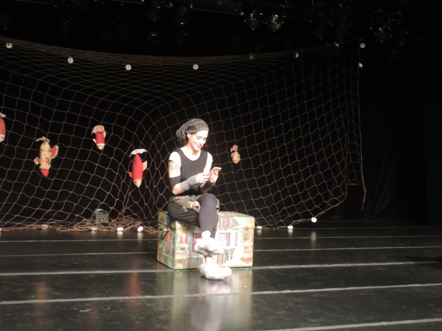 CAROL - Agora eu tive um bom momento. Fiz o figurino de três espetáculos e quando a gente faz figurino é preciso assisti-los muitas vezes... Tive a oportunidade de ver artistas incríveis trabalhando, o Daniel Worren fazendo Ponto De Vista De Um Palhaço, as atrizes de Os imortais, os atores de Carmem. Eu tenho aprendido muito vendo os colegas. Cada trabalho é uma pós-graduação porque são pessoas incríveis. Com relação aos Fofos, uma escola. Minha família e a minha escola. Foi nos Fofos que eu aprendi a fazer figurino e que eu perdi o medo de ir para a cena. Lá que adquiri a compreensão do trabalho do ator e tive a compreensão da importância do todo. Lá eu trabalhava na cozinha, ajudava na criação do figurino, na administração do espaço. Nos Fofos sempre tivemos as rédeas dos nossos trabalhos e isso faz com que transborde em cena a nossa vida, e isso é que é o mais importante na arte. Podemos ser virtuosos no que fazemos, mas se não tiver vida, se não pulsa, o público se afasta do teatro. A gente tem que transbordar a vida para dentro da cena e a cena tem que transbordar para a nossa vida também. O objetivo da ¨Pescadora de Ilusão¨ é o perdão e fazemos a peça para pedir perdão. Isso é o que me comove. A peça nesse momento da minha vida foi muito importante porque no ano passado fiz uma terapia em que eu tive que me perdoar. E foi nessa terapia que eu consegui me livrar de uma dor no corpo. Isso é o transbordar...