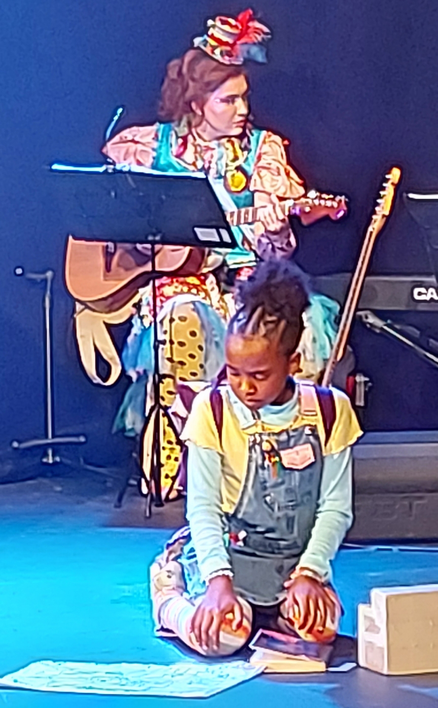 O lúdico está presente especialmente na música, nas roupas da criança e no texto, claro.