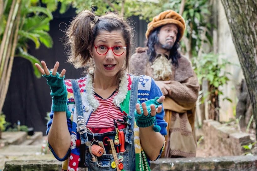 Essa viagem acontece justo no momento em que Da Vinci testava uma máquina de andar projetada a pedido da Dona Conda (a famosa Gioconda, também interpretada por Luciana Castellano).