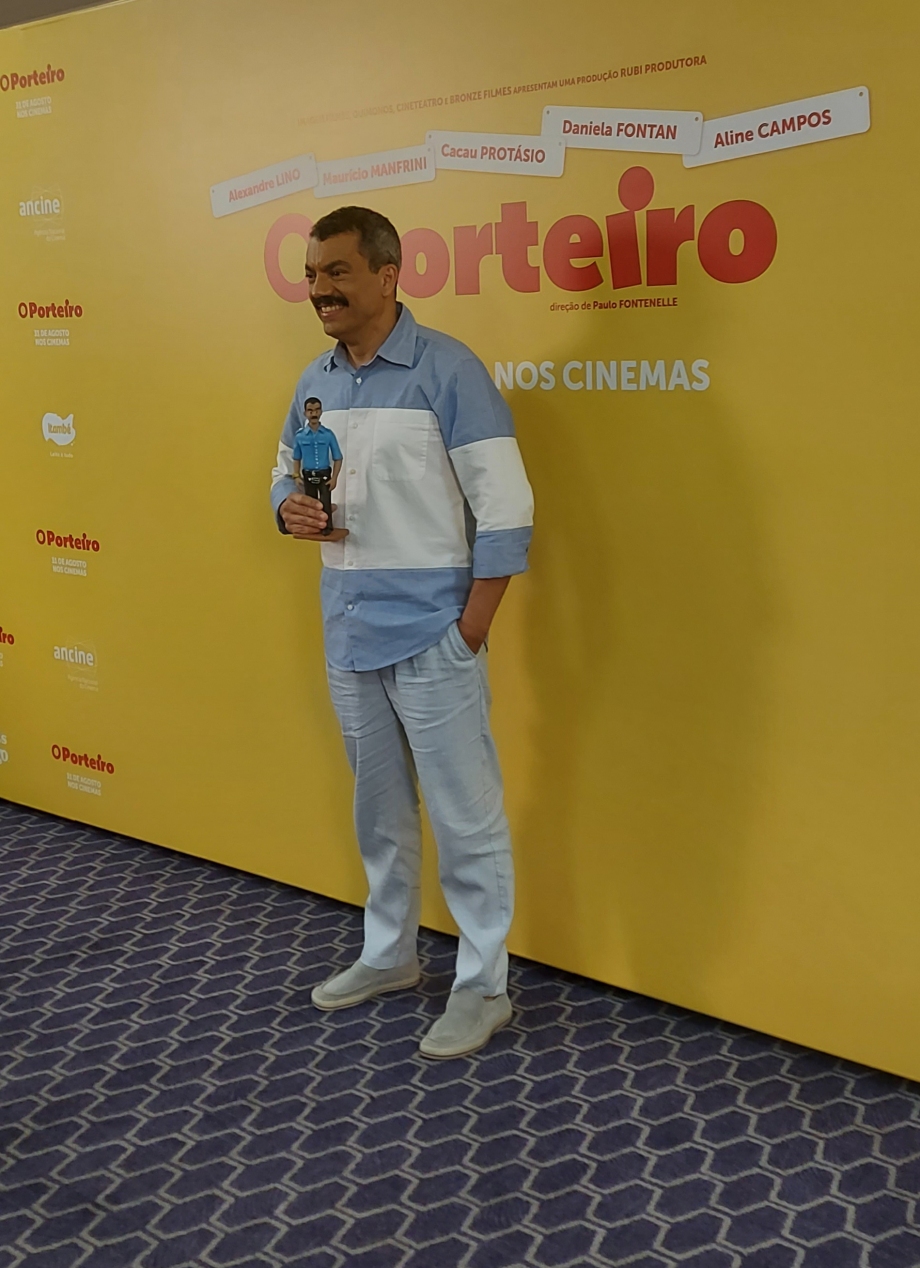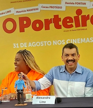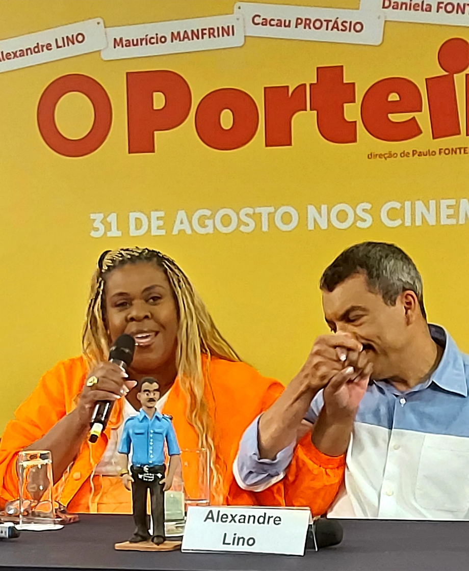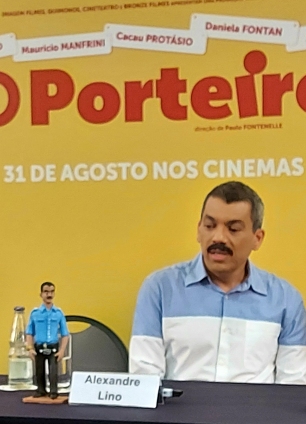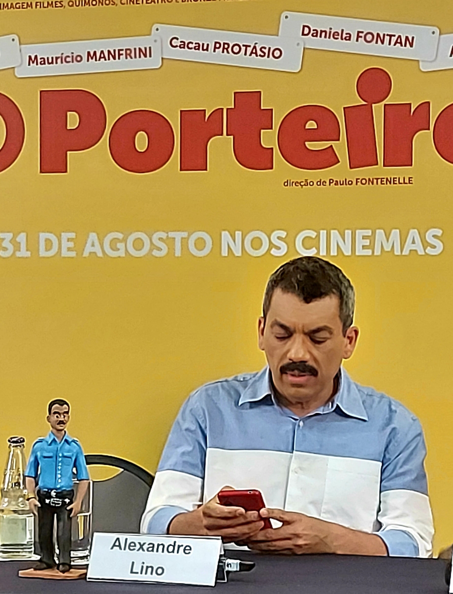 Assim como na peça, Alexandre Lino é o porteiro de um prédio carioca. Porteiro e salvador dos moradores do condomínio.