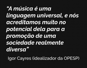 Graças à sensibilidade Igor Cayres, mestre em atividades culturais e artísticas e produtor cultural, surgiu o projeto da OPESP (Orquestra Parassinfônica de São Paulo).