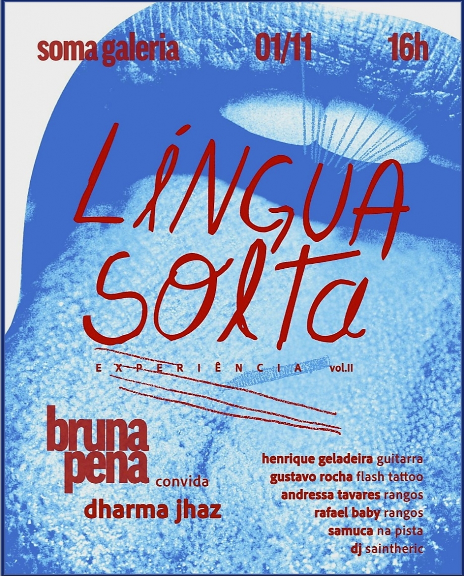 A programação começa com uma flash tattoo comandada por Gustavo Rocha, seguida por DJ set de Saintherick, show de Bruna Pena com participações especiais de Dharma Jhaz e Samuca, e exibição do teaser inédito da Experiência Língua Solta, com QR code para acesso direto ao show completo no YouTube.