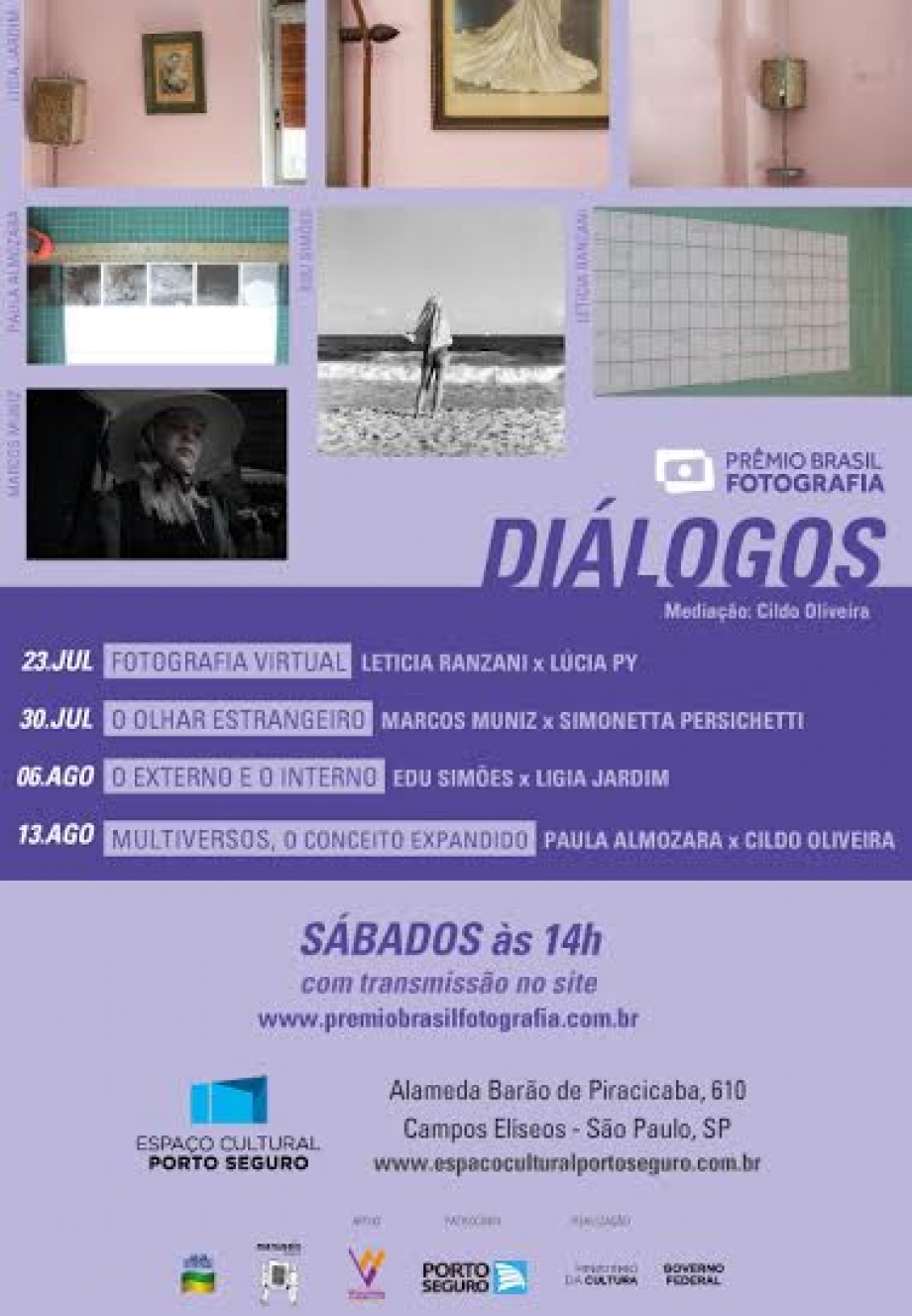 Com o objetivo de aproximar o público, que visita a exposição do Prêmio Brasil Fotografia 2015, em cartaz no Espaço Cultural Porto Seguro, dos conceitos da fotografia, a série Diálogos promove encontros semanais que serão transmitidos pelo site www.premiobrasilfotografia.com.br