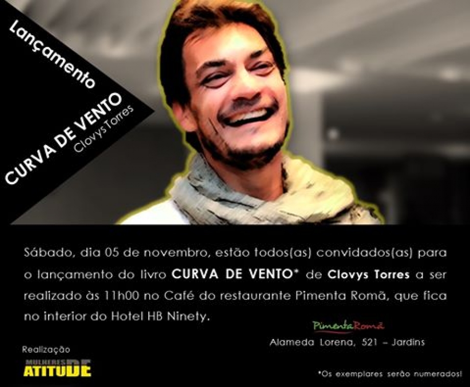 Clovys Torres não para. Sempre em busca de projetos e desafios. Ator, diretor, produtor, dramaturgo, poeta, jornalista, o artista lança seu primeiro livro, Curva de Vento.