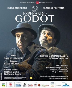 CT – Fiz o espetáculo Édipo com o Elias faz cinco anos e foi incrível. Este ano surgiu a oportunidade de fazer Esperando Godot, um projeto da Daíse Amaral. Quando ela me falou que ia montar esse espetáculo, e convidar o Elias para dirigí-lo, na hora eu pedi para trabalhar com ele, porque ele tem uma generosidade muito grande.
