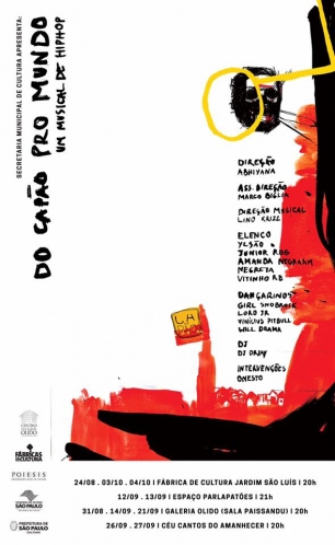 DO CAPÃO PRO MUNDO – UM MUSICAL DE HIP HOP – Estreia dia 31 de agosto, quinta-feira, às 20 horas, na Galeria Olido, na sala Olido. Duração: 70 minutos. Recomendado para maiores de 12 anos. Ingressos grátis (retirada uma hora antes na bilheteria dos locais de apresentação)