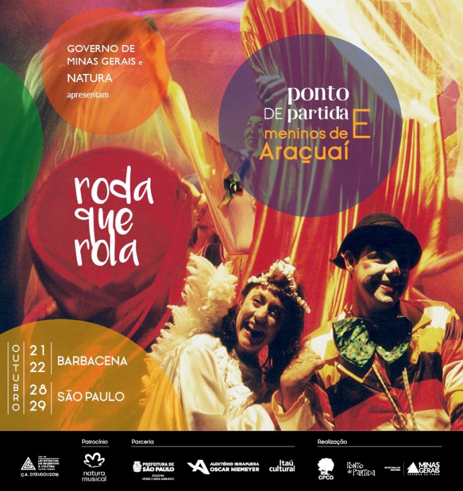 Roda que roda foi criado em 1999 e mistura grandes compositores brasileiros com uma profunda pesquisa do cancioneiro do Vale do Jequitinhonha. É a música brasileira mostrada com louvor por artistas que fazem o nosso teatro e a nossa música pulsarem. Ponto de Partida e o Coro de Araçuaí representam a nossa riqueza cultural, sobretudo mineira.