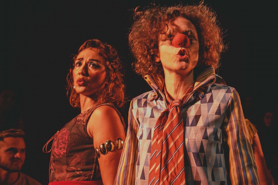 Criação: Companhia Estável de Teatro. Texto: João Ribeiro Chaves Neto. Direção: Nei Gomes. Adaptação da Dramaturgia: Companhia Estável de Teatro. Atuação: Juliana Liegel, Kátia Lazarini, Maria Carolina Dressler, Miriele Alvarenga, Osvaldo Pinheiro e Paula Cortezia. Produção: Flávia Morena, Maria Carolina Dressler e Nei Gomes. Direção Musical: Reinaldo Sanches. Músicos: Agatha Gabriela, Rayra Naciel e Simone Ferreira. Letras/Músicas: Companhia Estável e Reinaldo Sanches. Provocadores do Processo: Melodrama Circense: Estudo Teórico: Ermínia Silva. Melodrama Circense: Prática de Interpretação: Renata Zhaneta. Treino do Sistema Stanislavski: Celso Frateschi. Estudos Teóricos sobre processos migratórios: Terezinha Ferrari. Estudos Teóricos sobre os processos históricos da Ditadura Militar: Amelinha Teles, Criméia Alice Schmidt de Almeida e Emilio Ivo. Convidados para debate Confrontando 1980 e 2016: Celso Nunes e Regina Braga. Prática de Palhaço: Daniela Biancardi. Preparação de Voz: Rani Guerra. Preparação Corporal: Ana Perche e Carlos Sugawara. Maquiagem: Ana Luiza Icó. Iluminação: Erike Busoni. Figurinos: Marcela Donato. Assistente de Figurinos: Marita Prado. Cenografia: Luis Rossi. Vídeo Projeção: Luiz Cruz. Operação Técnica: Amanda Tolentino de Araujo, Evas Carretero, Juninho Batucada e Priscila Chagas. Operação de Luz: Diego FF Soares. Estagiária: Iraci Santos. Fotos, Registro Audiovisual, Mídias Sociais e Produção visual: Jonatas Marques. Assessoria de Imprensa: Adriana Balsanelli. Poema Pangéia: Juliana Liegel. Orientação de Dança: Nuish Bella Luna. Orientação de Bambolê: Marina Leonel e Luana Albeniz da Cruz.
