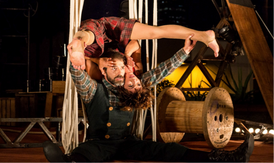 Daniel Pedro e Maíra Campos, integrantes do circo Zanni, apresentam o espetáculo Balbúrdia