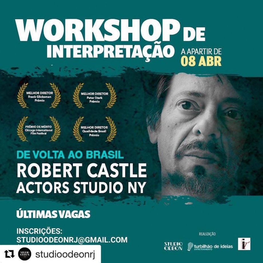 Castle ministrará workshops de interpretação no Rio de Janeiro para três turmas. No início seriam dois workshops, mas a procura foi tão grande que foi preciso ampliar a quantidade das aulas.